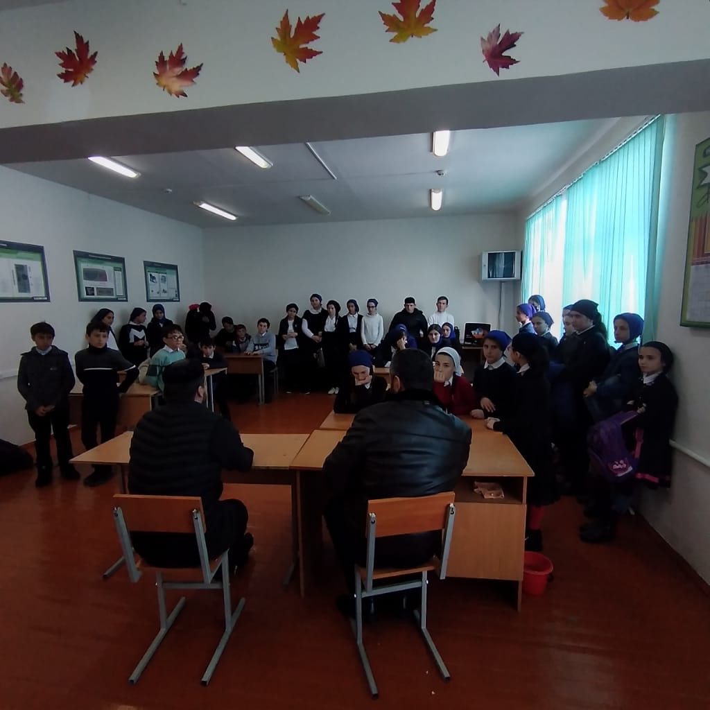 16.01.2020Сегодня, после уроков, педагог ДНВ Амхадов А.Л. совместно с директором школы Амхадовым А.У. провели беседу с обучающимися 5-10 кл., в рамках реализации плана Единой Концепции по духовно-нравственному воспитанию и развитию подрастающего поколения ЧР.