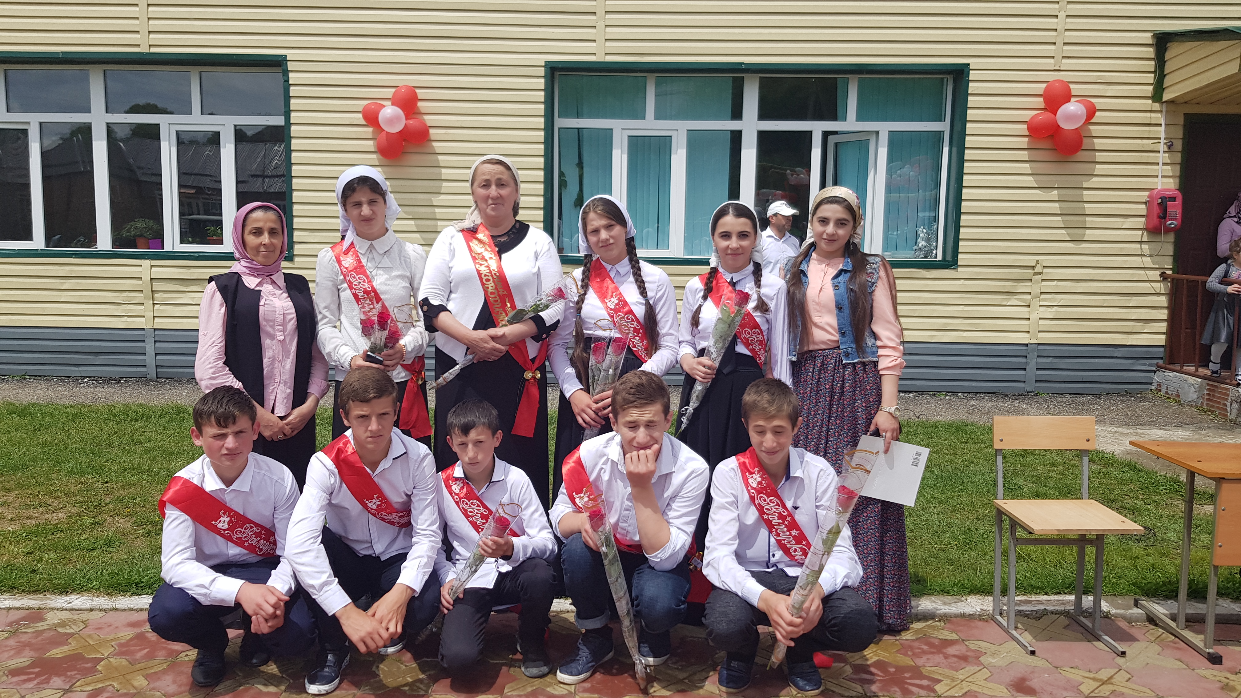 Торжественную линейку, посвященную последнему звонку, открыли ведущие. Выпускников поздравили со знаменательным днем в их жизни и поблагодарили всех гостей, друзей и родителей за то, что они пришли поддержать и проводить наших дорогих выпускников в добрый путь. После чего торжественно, под музыку вышли нарядные выпускники 9-ого класса со своим классным руководителем Хасаровой Л.С.
